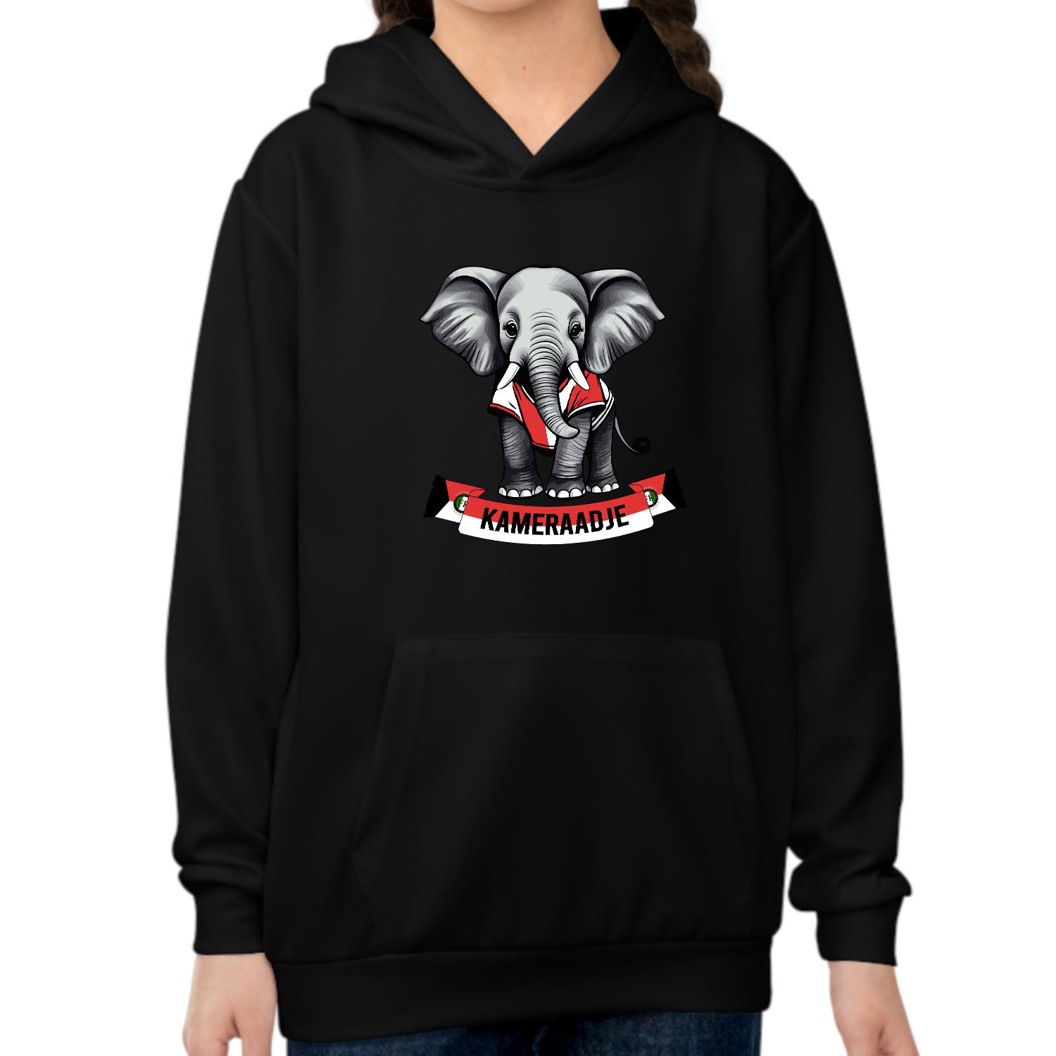 Hoodie regular zwart - kids - Kameraadje olifant - logo voor groot