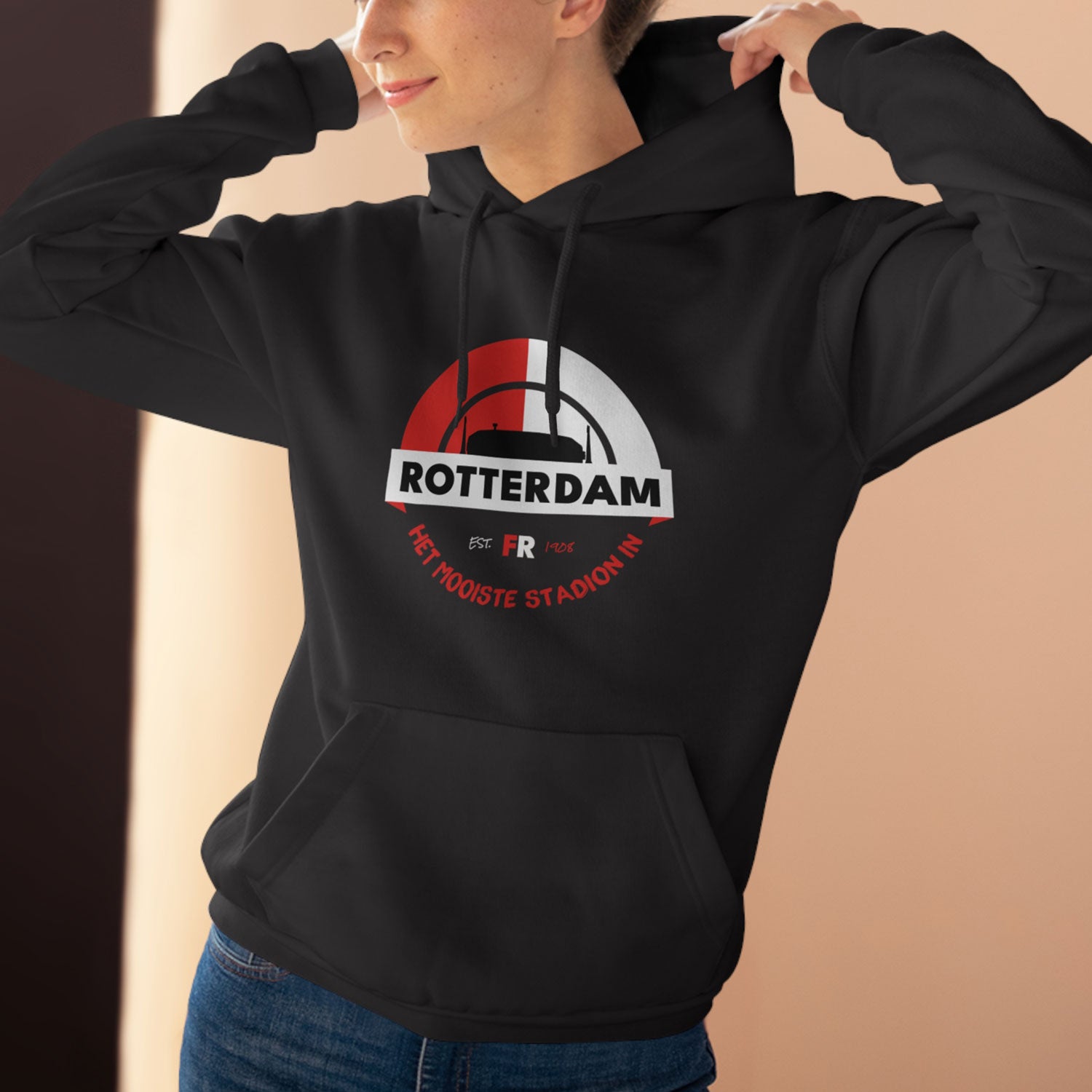 Hoodie relax zwart - Het mooiste stadion in Rotterdam - logo voor groot