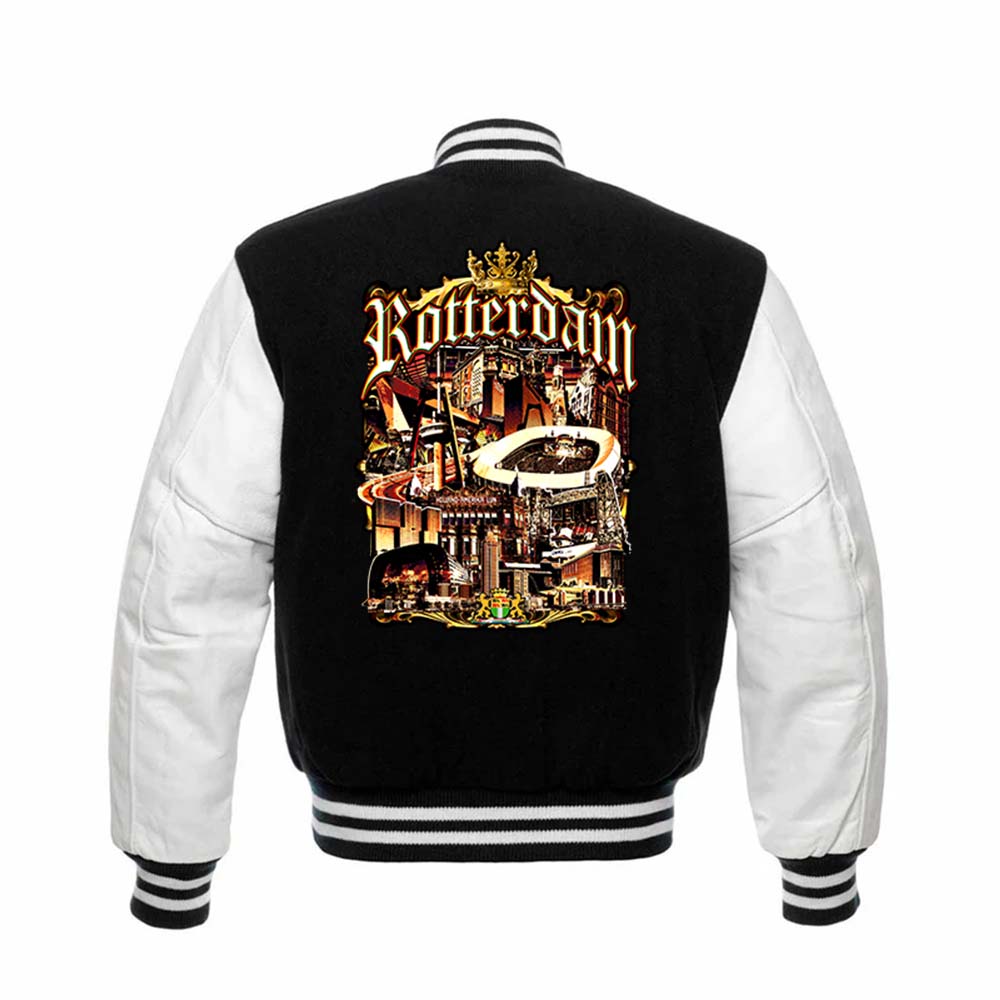 Deze fantastische college jacket mag dan ook niet aan jouw collectie ontbreken. Bij ons in de webshop kun je van alles vinden voor de echte Rotterdammer. Kijk ook eens bij onze andere artikelen uit Rotterdam zoals: t-shirts, tassen, truien & vesten, petten, kado's en meer...